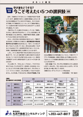 家主様、地主様向けのニュースレター「まるっと通信」。不動産業界のニュース、最新の賃貸現場の様子、賃貸管理の「今役立つ情報」を無料で毎月1回、電子メール(PDF添付)にてお届けします。
