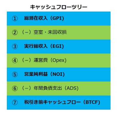 ご自身の不動産投資が利益を上げているかどうか確認するには、実際に入ってきた家賃から、外部への支払いを差引いて残ったお金はいくらか知る必要があります。このお金の流れを表にしたものが、キャシュフローツリーです。