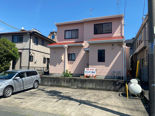 ピンクの外観が特徴の東南向き角部屋のお部屋